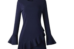 Blue Red Fit and Flare Dress - Button Down Belted Waist